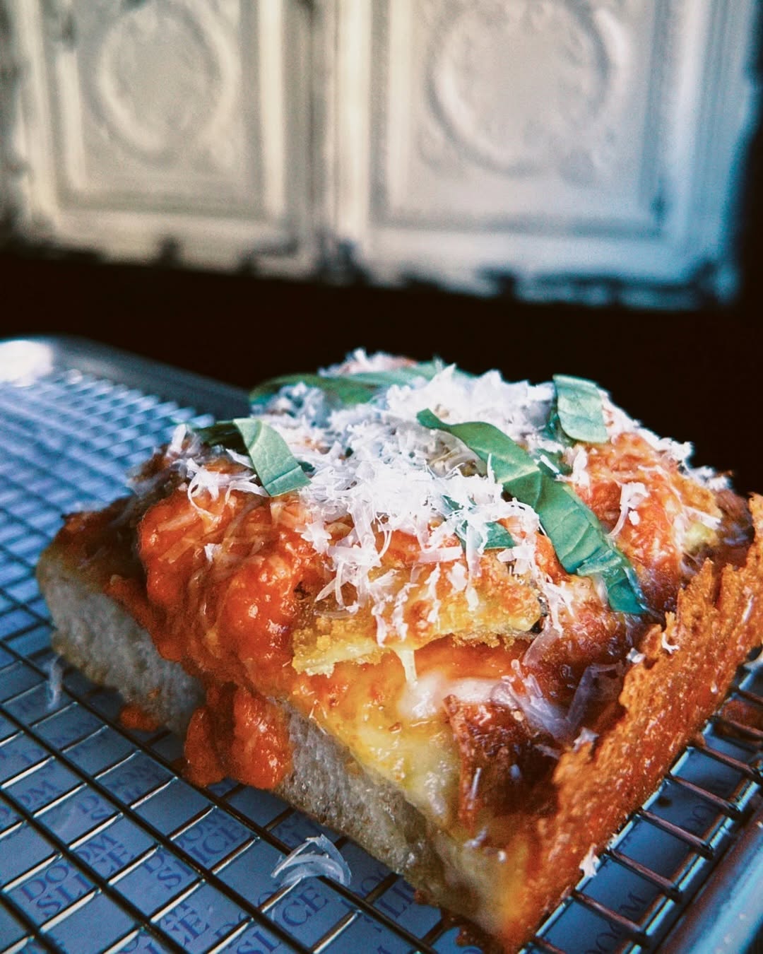 We love Doom Slice and we’re really enjoying their specials. The latest guest star on the menu is a classic Eggplant Parm. Eggplant is American for aubergine fyi. It’s smothered in tangy, rich marinara sauces and dusted with aged parmesan shavings. It’s a delicious medley of Italian American flavour. All that’s missing is a side of gabagool.